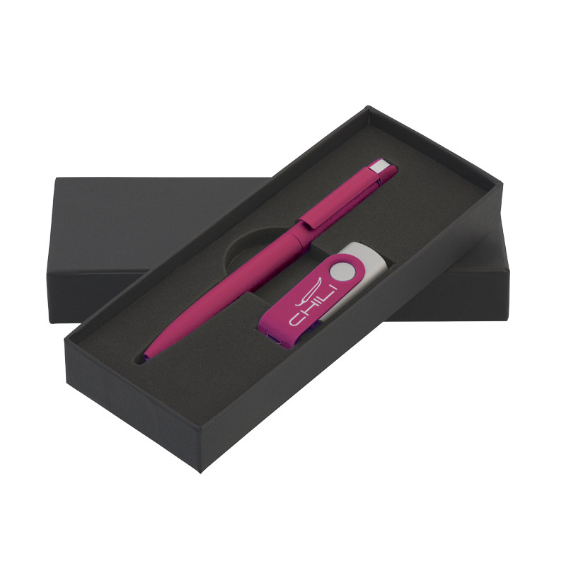 Набор Ручка шариковая 'Jupiter' 6826-24S фуксия + Флеш-карта 'Vostok' 6874-24S/8Gb фуксия, объем памяти 8GB, покрытие soft touch артикул: 6877-24S/8Gb