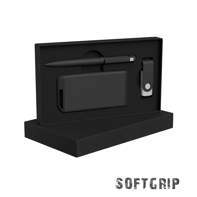 Набор Ручка шариковая 'Jupiter SOFTGRIP' 6950-3 + флеш-карта 'Vostok SOFTGRIP' 6951-3/16Gb + зарядное устройство 'Theta' 6949-3, 4000 mAh, черный, покрытие soft grip артикул: 6968-3/16Gb