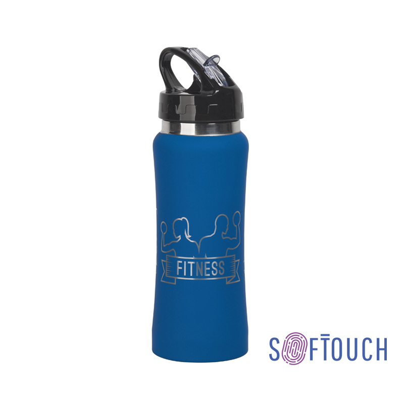 Бутылка для воды 'Индиана' с гравировкой по окружности 'Фитнес', покрытие soft touch артикул: 7803-2_GR