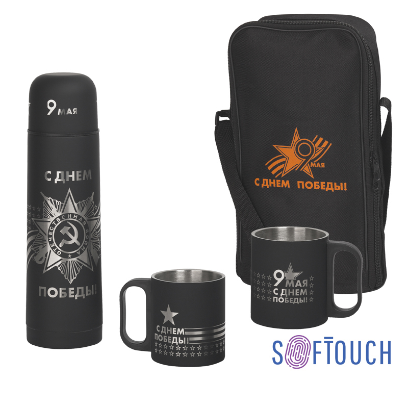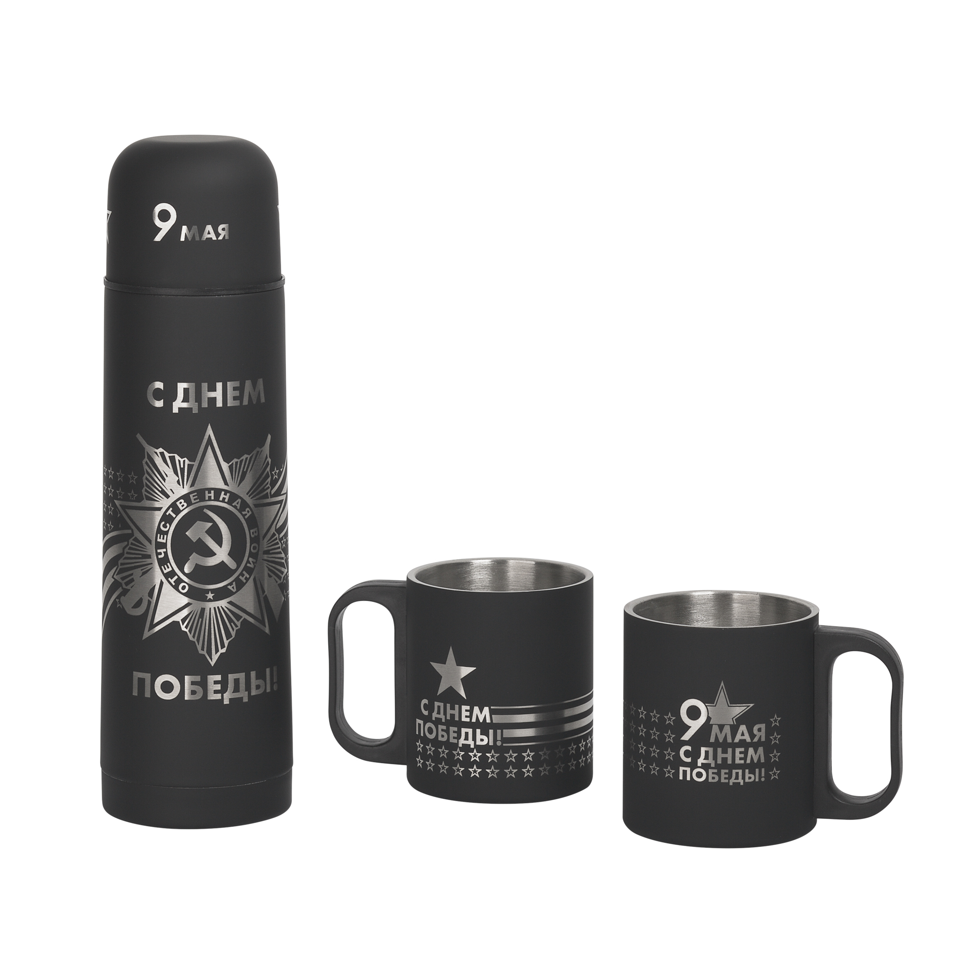 Набор 'Гейзер' (термос, 2 кружки) c гравировкой по окружности 'С Днем Победы', покрытие soft touch артикул: 6351-3_GR