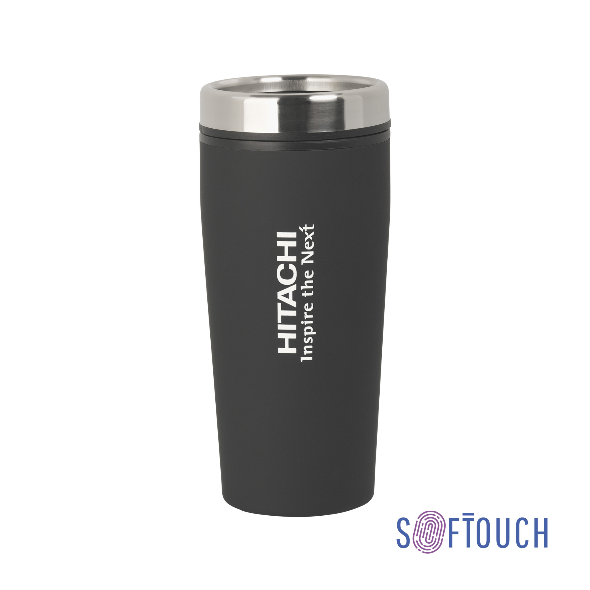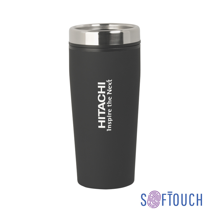 Термостакан 'Европа' с UF печатью 'Hitachi', покрытие soft touch, черный артикул: 6350-3_UF