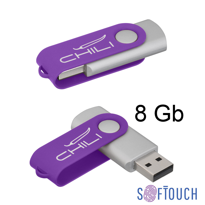Флеш-карта 'Vostok', объем памяти 8GB, фиолетовый (2603C), покрытие soft touch, пластиковый корпус и металлический клип, хромированная подложка на клипе артикул: 6874-350S/8Gb