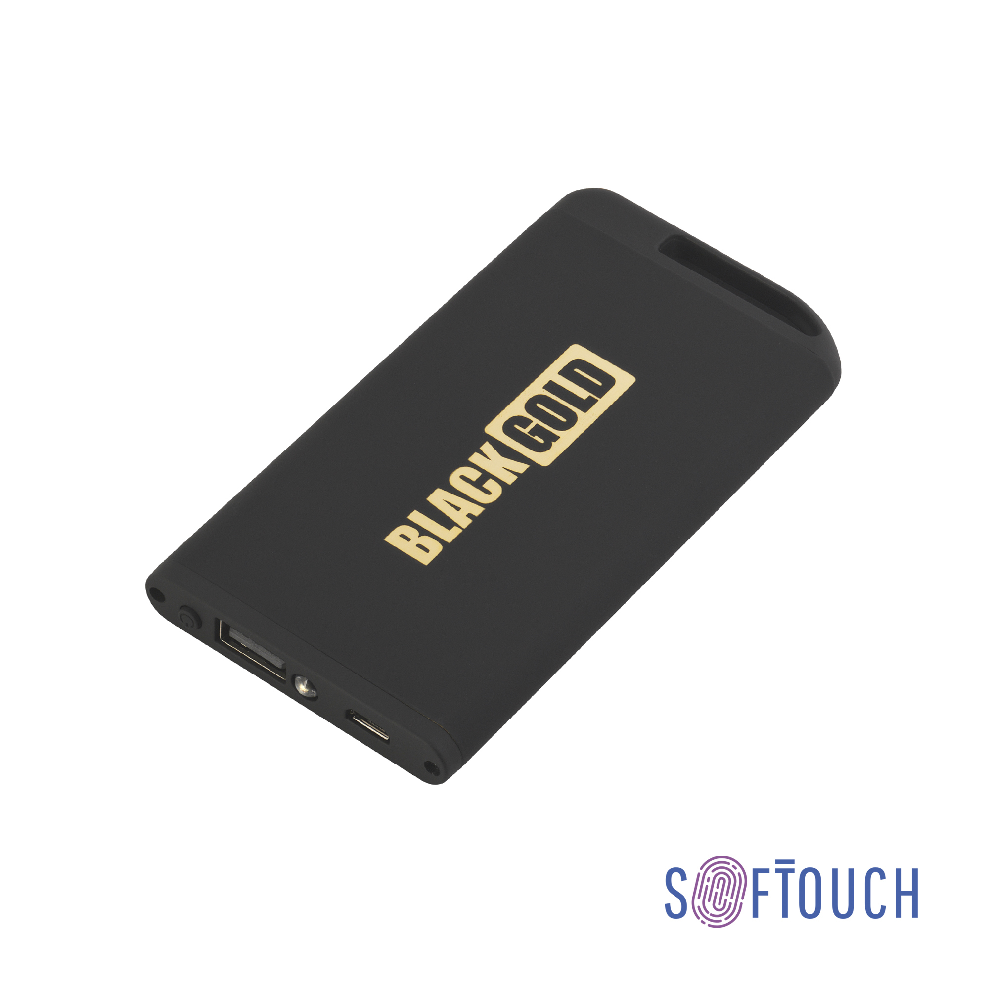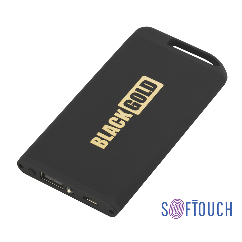 Зарядное устройство 'Theta' с фонариком, 4000 mAh, черный/золото, покрытие soft touch, золотистая подложка артикул: 6871-3G