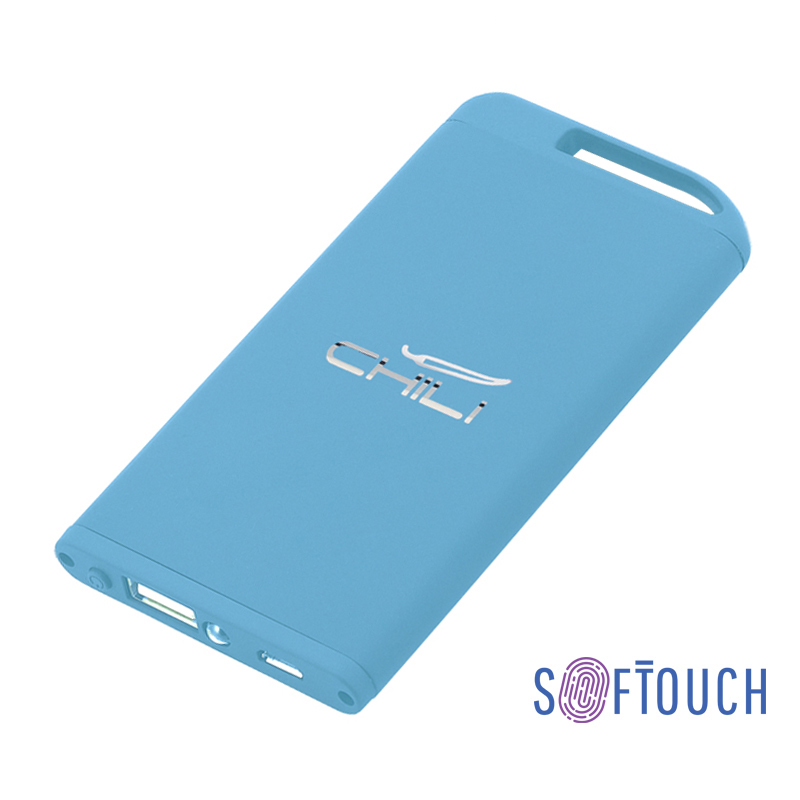 Зарядное устройство 'Theta' с фонариком, 4000 mAh, голубой (284U), покрытие soft touch, хромированная подложка артикул: 6871-22